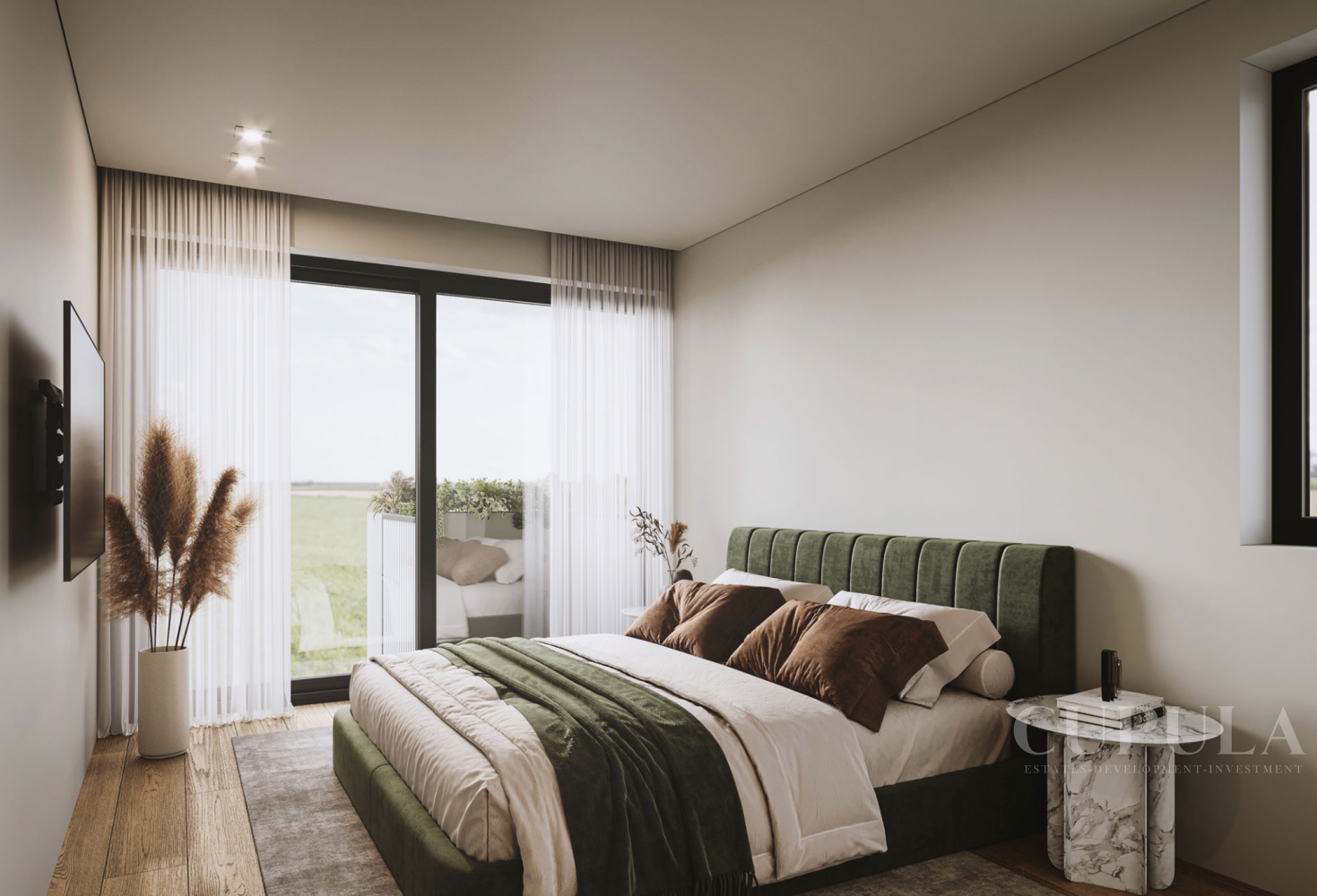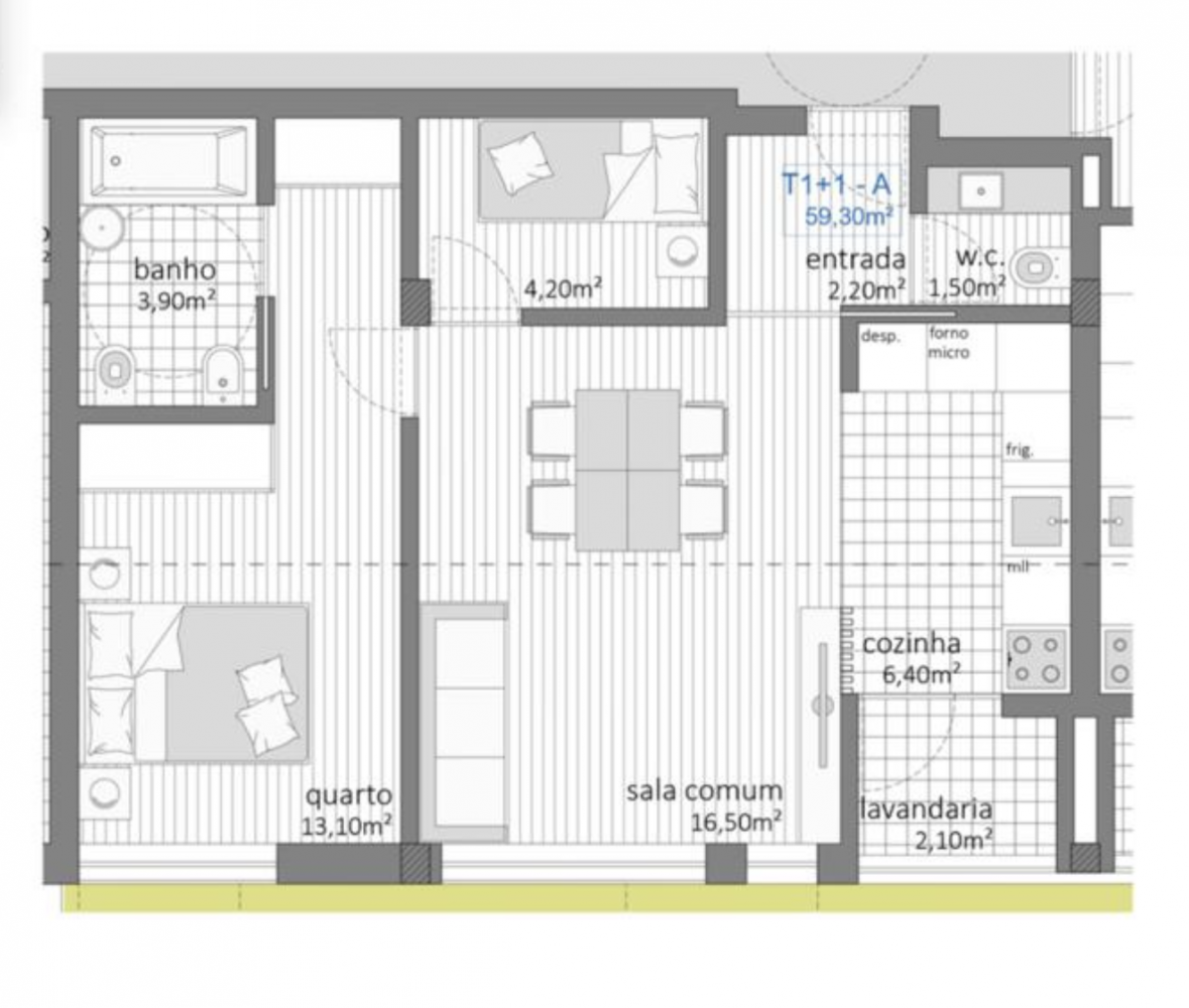 Apartamento T1+1 inserido no prestigiado empreendimento Green Park Residence, atualmente em fase de acabamento, oferecendo a oportunidade de adquirir um imóvel moderno com possibilidade de celebração de contrato de bem futuro. Com uma área total de 59,30 m², este apartamento destaca-se pela sua distribuição funcional e equilibrada. A zona social apresenta uma sala comum ampla e luminosa (16,50 m²), com espaço para estar e refeições, em ligação com a cozinha (6,40 m²), totalmente pensada para o dia a dia, com zona de lavandaria independente (2,10 m²). A área privada inclui um quarto confortável (13,10 m²), um espaço adicional (+1) versátil (ideal para escritório, quarto interior ou closet), uma casa de banho completa (3,90 m²) e ainda um WC de serviço (1,50 m²). A entrada (2,20 m²) assegura uma boa separação entre as áreas da casa. Inserido num empreendimento moderno e em valorização, oferece qualidade de construção, design contemporâneo e uma localização com bons acessos e proximidade a serviços. Ideal para habitação própria ou investimento. Nota: Imóvel em fase final de construção, com possibilidade de aquisição através de contrato bem futuro.