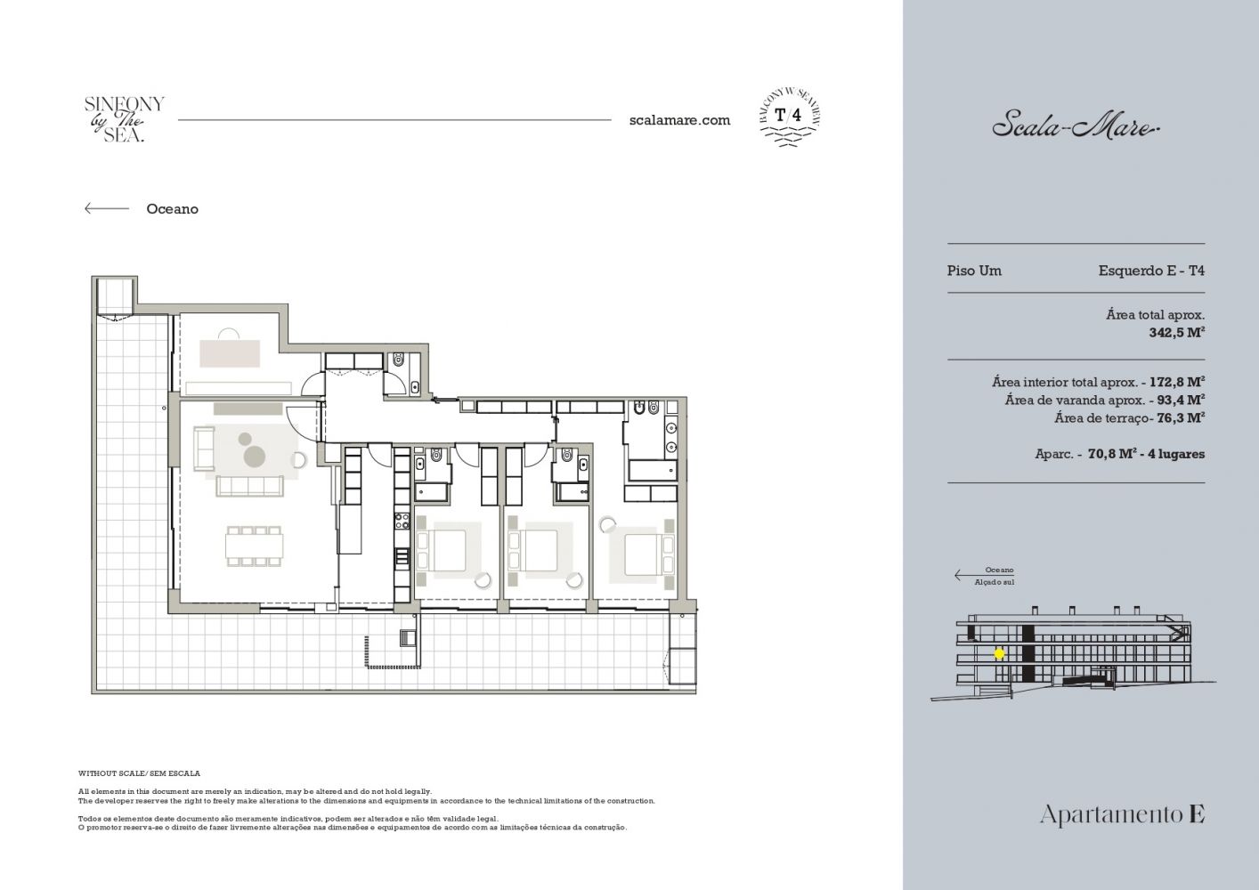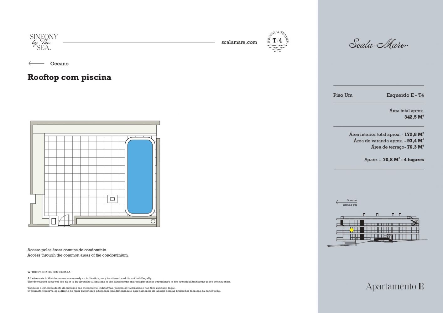 Exclusivo Apartamento T4 com Terraço Privativo e Piscina– Sofisticação e Conforto Descubra este extraordinário apartamento T4, onde o design contemporâneo se alia a áreas generosas e a uma vivência exterior verdadeiramente única. Com uma área interior de 173 m², este imóvel destaca-se pela sua organização fluida e elegante. A zona social apresenta uma ampla sala de estar e jantar em conceito open space, integrada com uma cozinha moderna, criando um ambiente sofisticado, luminoso e ideal para receber. A área privada oferece três quartos espaçosos, incluindo uma requintada suíte, pensados para garantir conforto e privacidade absoluta. O verdadeiro destaque deste imóvel reside nas suas excecionais áreas exteriores: uma elegante varanda com 93 m² e um magnífico terraço privativo com 76 m², perfeito para momentos exclusivos de lazer, refeições ao ar livre ou simplesmente desfrutar de um ambiente tranquilo com total privacidade. Para maior comodidade, o apartamento inclui 2 lugares de estacionamento (74m²). Área total aproximada: 416 m² ✨ Destaques: •Arquitetura contemporânea e linhas elegantes •Amplas áreas interiores e exteriores •Terraço privativo de dimensões raras •Excelente exposição solar e luminosidade •Zona social ampla e sofisticada •Estacionamento para duas viaturas Uma propriedade distinta, pensada para quem valoriza espaço, conforto e uma experiência de habitação superior.